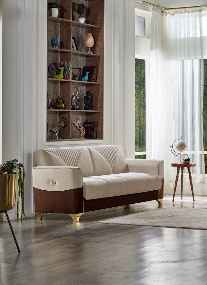 Este tapițată cu stofă rezistentă la uzură, ușor de întreținut, moale și catifelată la atingere. Design-ul și cromatica încadrează această canapea în stilul modern, fiind potrivită pentru un living sau un hol elegant.