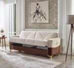 Canapeaua Monte este extensibilă, are 3 locuri, structură sprijinită de cadrul și picioare din metal, fiind definită de elemente care asigură unicitate: detalii excepționale, butoni, cusături și forme bine conturate. Șezutul este realizat din burete și arcuri sinusoidale pentru un plus de confort.